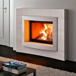 - Der Trockenbaukamin in der Wand sieht toll aus.