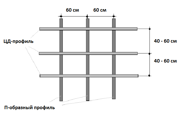 - Jeder Abstand zwischen den Führungen wird ausgewählt, der vom Vorhandensein einer Isolierung oder der Installation von Kommunikationsmitteln abhängt.