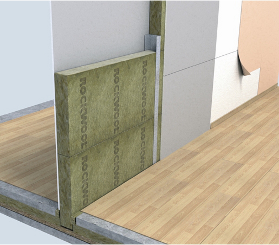 Mineralwolle wird zum Schallschutz verwendet. In diesem Fall reduziert die Trockenbauwand das Eindringen von Schall von einem Raum in einen anderen.
