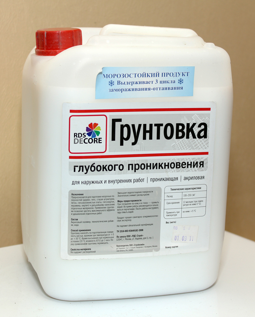 Übrigens gibt es auch konzentrierte Formulierungen im Angebot, die vor Gebrauch mit Wasser 1: 2, 1: 5 oder sogar 1:10 verdünnt werden. Im letzteren Fall werden bei einem Fassungsvermögen von fünf Litern des Konzentrats 50 Liter gebrauchsfertiger Primer erhalten - und dies ist sehr vorteilhaft, obwohl es etwas mehr kostet.