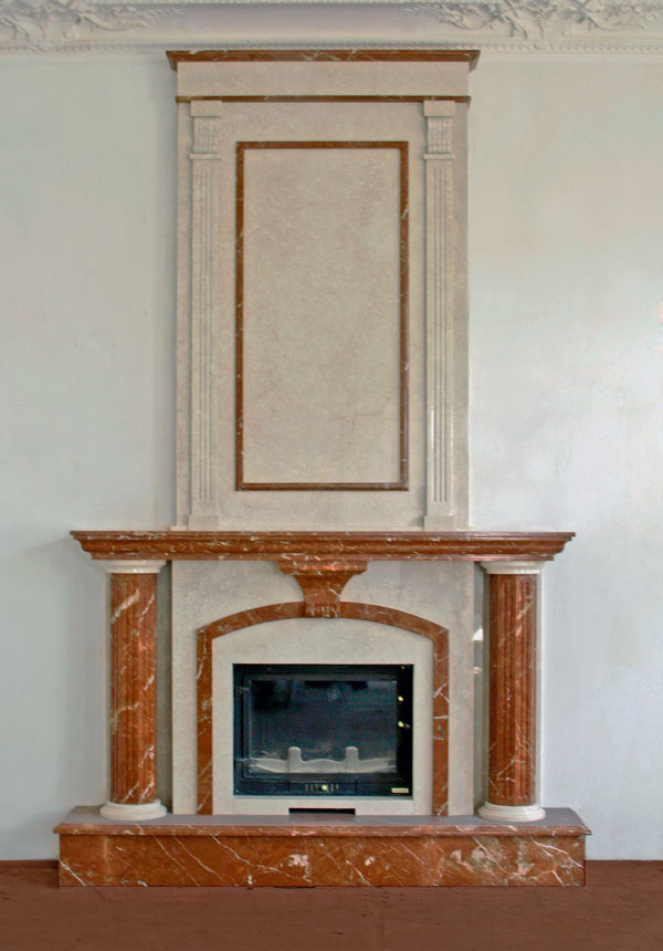 Hinweis. Für solche falschen Entwürfe wird häufig eine Marmorauskleidung von Kaminen verwendet.