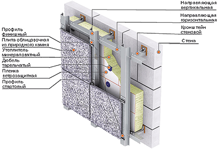 Granit hat ein großes Gewicht und aus diesem Grund wird die Oberfläche verstärkt. Das Installationsprinzip ähnelt der Befestigung von Marmor oder einem anderen natürlichen Agglomerat.