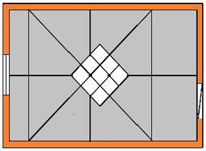 Die Anzahl der Kacheln wird nicht nach Fläche ausgewählt, aber gemäß der Abbildung wird jede Kachel und jede Hälfte berücksichtigt. Typischerweise entspricht das Muster dem ausgewählten Stilschema.
