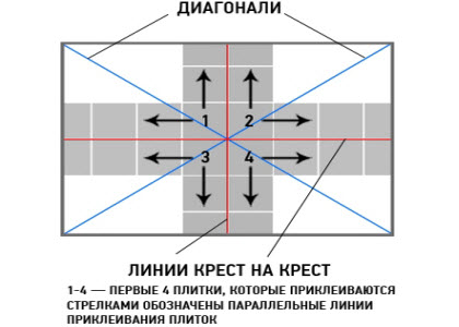 Nach der Fliesenzeichnung ist es sofort notwendig, mit dem Verlegeschema zu bestimmen. Es kann in zwei Versionen sein.