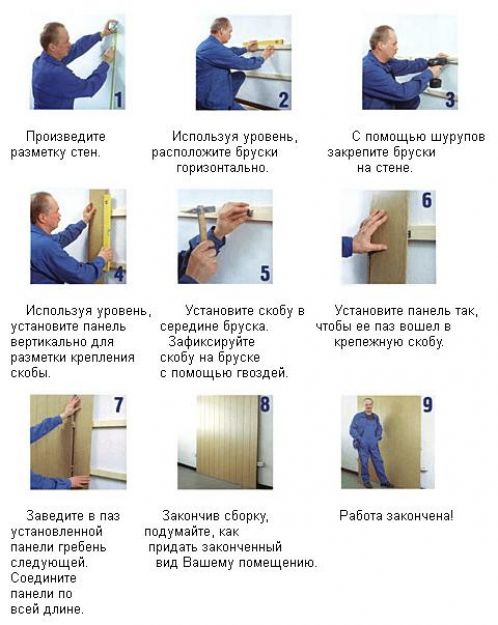 Die Anweisung existiert für solche Arbeiten nicht, aber alle Aktionen werden fast ähnlich wie bei der Installation von Holzpaneelen ausgeführt.