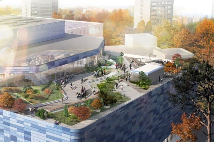 Das zweite Projekt ist das Budapester Kino, das nach dem Wiederaufbau im ersten Quartal 2020 in der Region Bibirevo eröffnet wird. Auf dem Dach des Gebäudes befindet sich ein gepflegter Platz mit Sportfeldern.