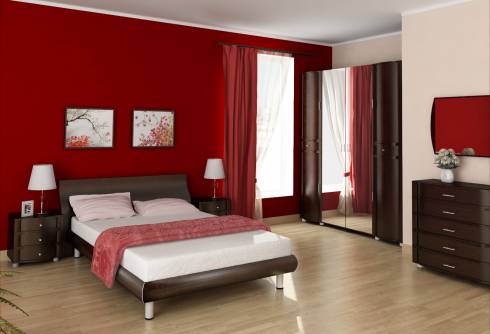 Für das Schlafzimmer wählen sie normalerweise ruhige und weniger helle Farbtöne, zum Beispiel Pink oder Himbeere. Wenn Sie Rot mit weichen und hellen Farben schattiert haben, können Sie seinen Ehrgeiz ein wenig beruhigen. Eine höllische Kombination gilt als Kombination mit Schwarz.