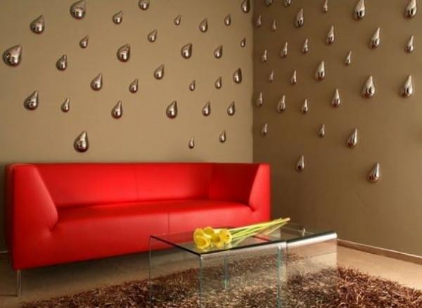 3D-Tapeten sind als Hauptveredelungsmaterial nicht sinnvoll - der Innenraum wird farbenfroh und eintönig. Meist werden sie für zusätzliche Wanddekorationen in Form von Spalieren oder gerahmten Gemälden verwendet.
