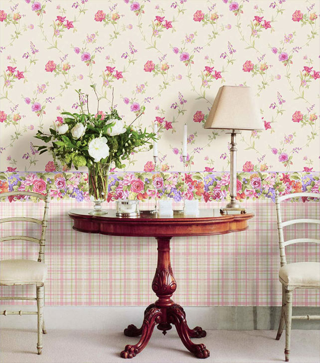 Die Dekoration einer Wand sieht auch gut aus mit verschiedenen Tapeten, deren Ränder mit dekorativen Formteilen, einem Fries oder Rändern einer geeigneten Farbe verschlossen sind. - Die Basis der Vinyltapete ist ebenfalls nicht gewebt, auf die eine Schicht Polyvinylchlorid aufgetragen wird, die ihnen den Namen gab.Diese zweischichtigen Tapeten können gewaschen und verwendet werden Badezimmer endet.