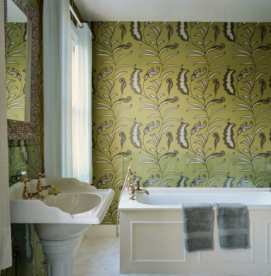 Erstens ist diese Tapete hygienisch, da sie auch mit warmem Wasser und Seife gewaschen wird. Zweitens werden sie oft nur von der Mitte der Wand aus geklebt. Von unten ist die Wand mit Fliesen, Holz oder Kunststoff verkleidet.