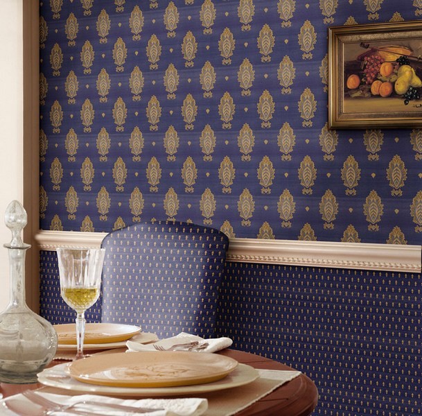 Zum Beispiel sind die teuersten Velours-Tapeten sehr launisch. Wenn Sie beim Einfügen etwas falsch machen, entstehen Verluste. - Jacquard-Tapeten, die in einem riesigen Sortiment von mehr als zweihundert Zeichnungen und Farben hergestellt werden, sind sehr beliebt. Sehr oft werden sie zur Dekoration von Räumen im klassischen Stil verwendet.