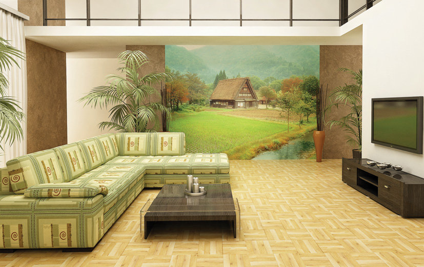 Das Wandbild kann so gestaltet werden, dass die Wände über die gesamte Höhe geklebt werden. Es gibt aber auch solche, die die Wand teilweise wie eine Platte schmücken.