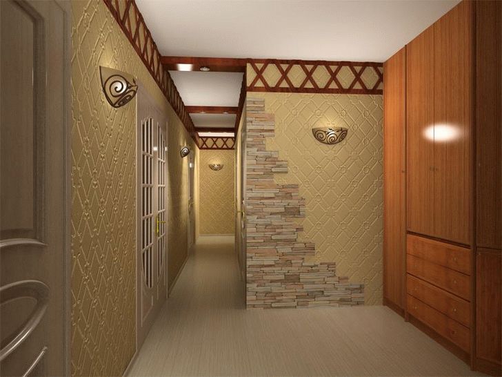 Die Wände im Flur können in verschiedenen Tapetenkombinationen dekoriert werden: