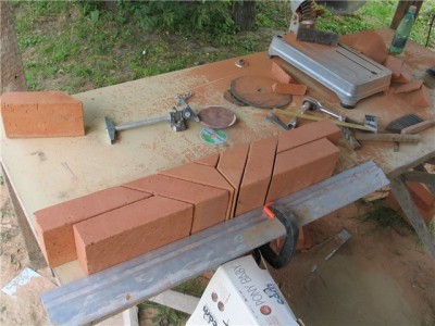 - Nachdem Sie zwei Reihen gemacht haben, müssen Sie einen Schlag für den Kamin machen. Es wird aus hochwertigen feuerfesten Steinen hergestellt.Falls Sie für das Fassadenmauerwerk keine Schamotte im Mörtel verwendet haben, muss dies hier erfolgen.