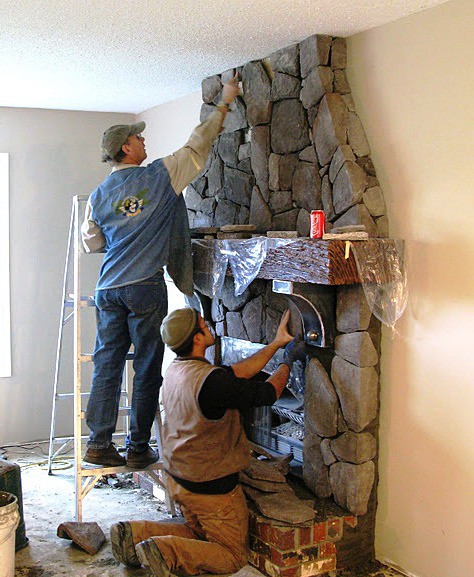 Etwas komplizierter ist es, einem Kamin mit einem wilden Stein gegenüberzustehen. Es ist schwieriger zu passen.