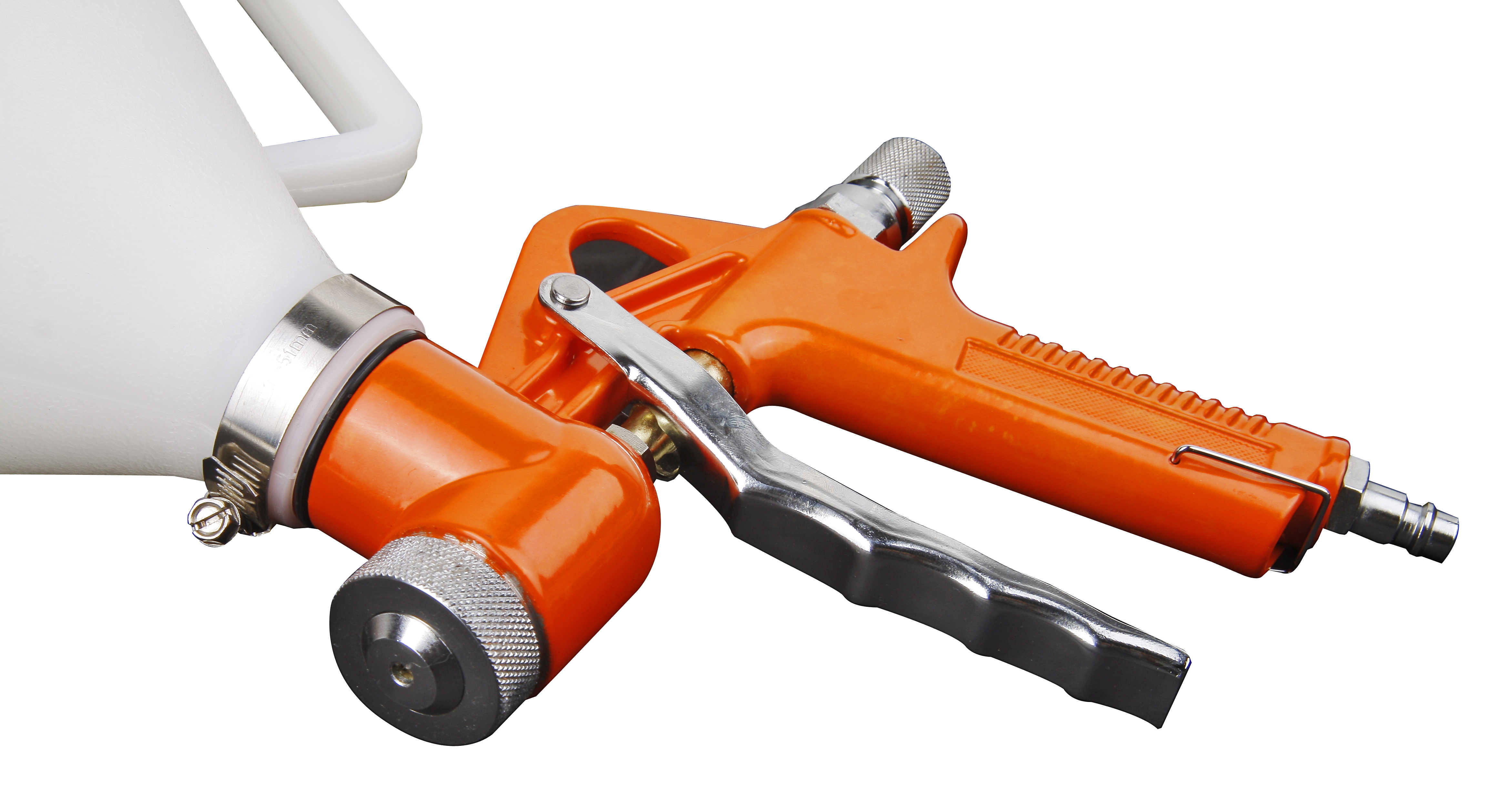 - Gipsbeschichtungsschichten werden mit einer Düse am Ende des Mörtels aufgetragen. Sie sprüht einen Lösungsstrom und wirft ihn mit hoher Geschwindigkeit aus. Abhängig von der Konsistenz der Lösung muss der Sprühbrenner unterschiedlich sein - er kann durch Ändern des Abstands zwischen der Spitze und dem Kanal eingestellt werden.