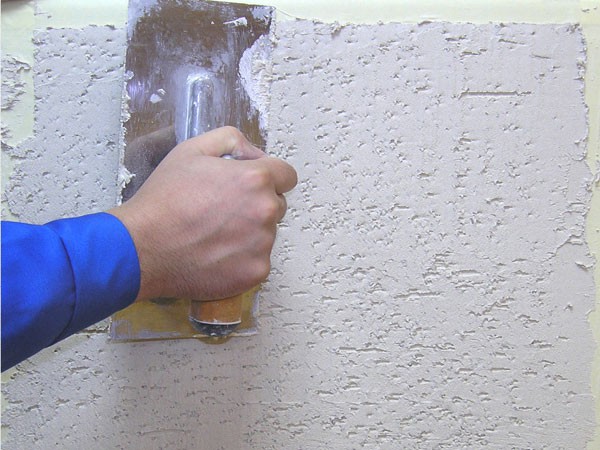 Die Mischung wird mit einem Spatel oder einer Kelle mit einer dünnen Schicht auf die Wände aufgetragen und sofort mit einer Reibe in direkten oder kreisenden Bewegungen eingeebnet. Das Texturmuster, das durch Rollen des Granulats in der Dicke der Lösung erzeugt wird, hängt von der Richtung dieser Bewegungen ab.