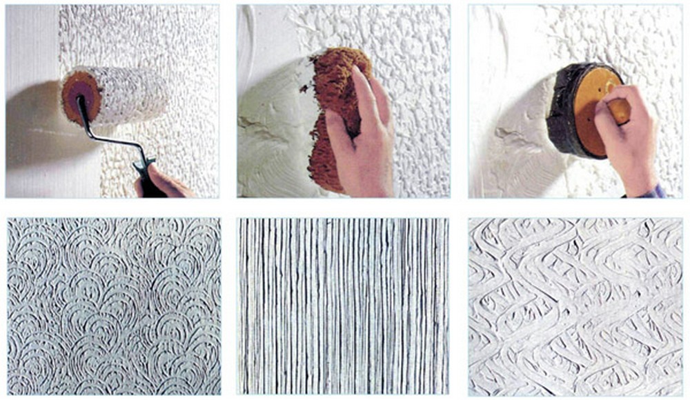 Eine der Aufgaben, für die Volma-Putz verwendet wird, ist die Dekoration der Wandfläche im ursprünglichen Stil. Mit speziellen Walzen auf einem Rohputz wird eine strukturierte Textur erzeugt. Ein Werkzeug zum Aufbringen eines volumetrischen Musters kann ein herkömmlicher Spatel, ein steifer Pinsel, eine Schwammreibe, eine Kelle oder ein einzeln hergestelltes Formwerkzeug sein. Der Master drückt ordnungsgemäß die Klinge auf die Lösung, die gerade eingestellt wird. Nach dem Aushärten wird die Oberfläche strukturiert und geprägt.