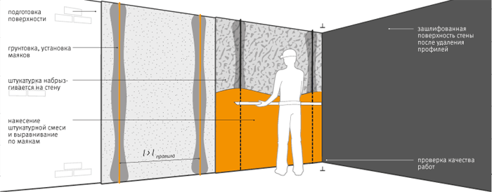 Das Verputzen und Nivellieren der Wände erfolgt in einer bestimmten Reihenfolge.
