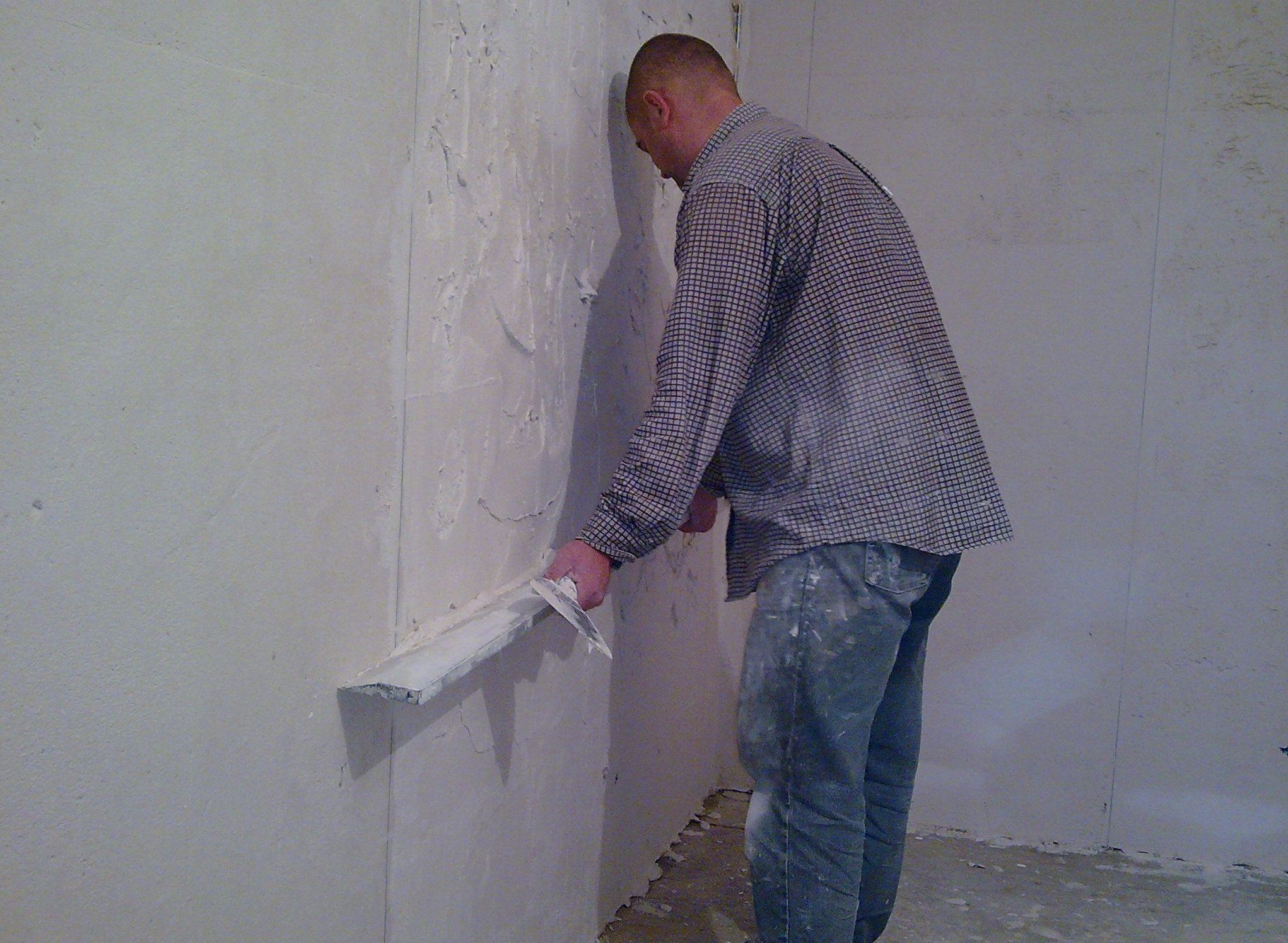 Nach dem Trocknen der letzten Schicht (einen Tag nach dem Auftragen von Gips oder Acrylspachtel) wird die fertige Oberfläche mit einer Reibe oder Mühle geschliffen. Der Autor verwendet Schleifnetze Nr. 80 für den ersten Durchgang und Nr. 120 für den zweiten. Nach dem Polieren wird die Oberfläche vakuumgereinigt und zum Streichen oder Tapeten grundiert.