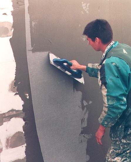 Da die Anleitung zum Verputzen von Polystyrol den Einbau einer Verstärkungsschicht aus Glasfasernetzdann können die beschriebenen Gemische nicht nur in der Zusammensetzung, sondern auch in der Anwendung variieren.