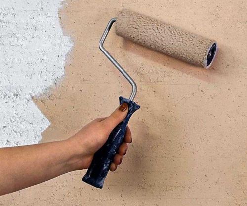 Zunächst ist es bei der Maltechnik mit Hilfe einer Walze und eines Pinsels notwendig, tiefes Eindringen mit viel zu imprägnieren. In diesem Fall hält der dekorative Mosaikputz fest auf der Auftragsebene.