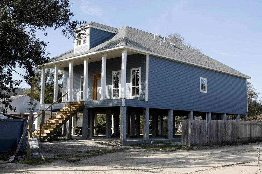 - Diese Art von Fundament wird gewählt, wenn der Boden, auf den das Haus gestellt werden soll, wogt oder umgekehrt zu dicht ist. Oder das Gebiet ist von Zeit zu Zeit saisonalen Überschwemmungen ausgesetzt.