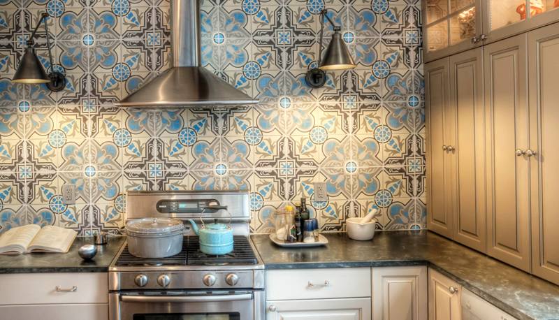 - Mit Tapeten, die Keramikfliesen imitieren, können Sie für weniger Geld ein traditionelles Kücheninterieur schaffen.