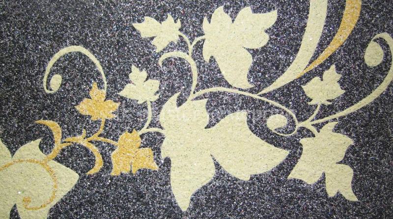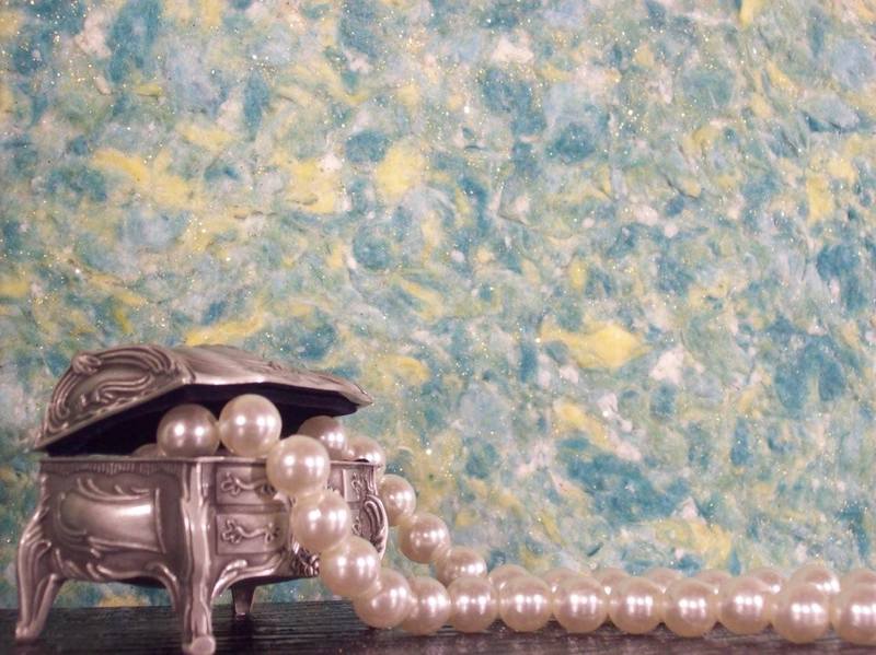 - Mit flüssigen Tapeten können verschiedene Muster auf der Wandoberfläche erzeugt werden, indem Materialien mit verschiedenen Farben und Texturen kombiniert werden.