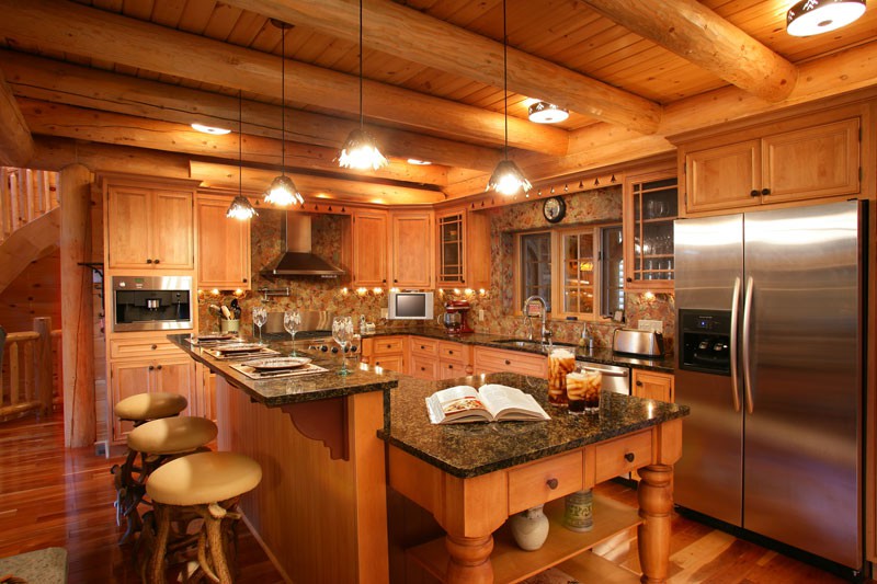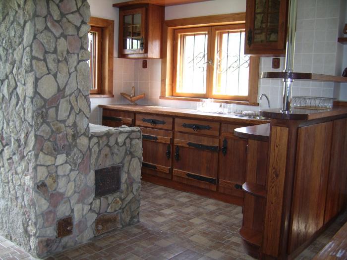 Die Fertigstellung der Küche in einem Holzhaus kann auf die Verfeinerung der Grundflächen der Wände, der Decke und der tragenden Strukturen reduziert werden.