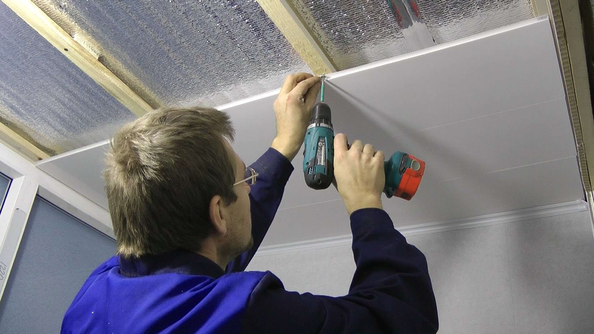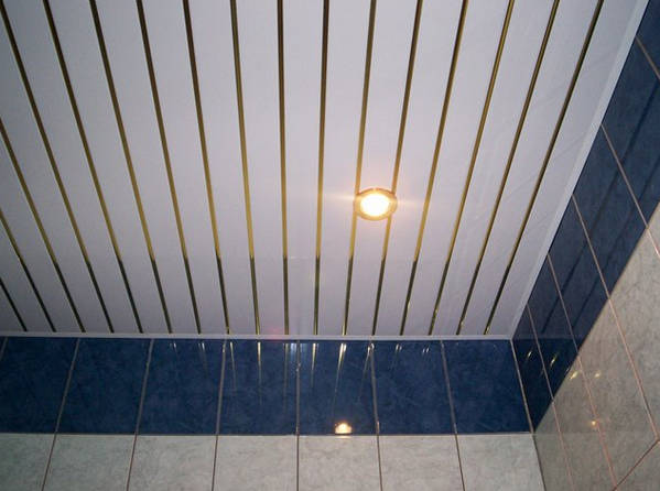 Die PVC-Videodecke ist unten zu sehen. In diesem Stadium gibt es Unterschiede in der Befestigung eines solchen Materials von MDF-Platten.