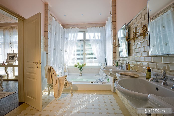 Und wenn Sie ein geräumiges Badezimmer haben und sogar ein Fenster haben, kann das Innere nicht schlechter sein als in unserem nächsten Beispiel.
