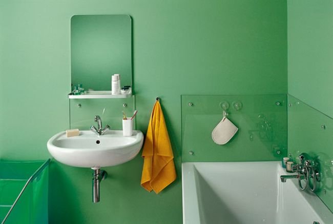 Am Rest der Wand wird dekorativer Putz oder Farbe verwendet. Die verwendeten Materialien müssen feuchtigkeitsbeständig sein.