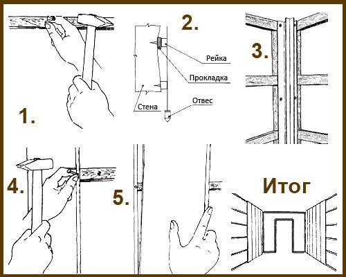 - Aus dem Winkel, aus dem die Paneele installiert werden sollen, müssen Sie das Startprofil mit einem Hefter oder Schrauben befestigen.
