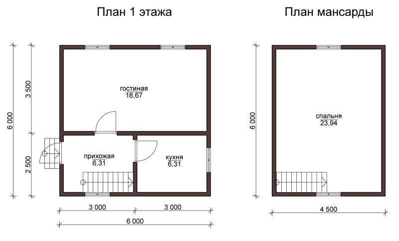 Ich habe ein Landhaus gebaut, das ebenfalls 6 x 6 m groß ist. Der Grundriss ist der gleiche, aber die Küche wurde aufgrund der Eingangshalle vergrößert. Im zweiten Stock wurden zwei Wände um 1,5 m erhöht und der Dachboden über die gesamte Fläche des Hauses verteilt. Aus diesem Grund gelang es ihnen, 2 Schlafzimmer zu arrangieren. Daher war es trotz der geringen Größe des Hauses möglich, 3 Wohnzimmer und eine große Küche darin unterzubringen. Zwar stellte sich heraus, dass die Wandhöhe bis zur Decke gering war, aber dort wurden Polstermöbel aufgestellt.