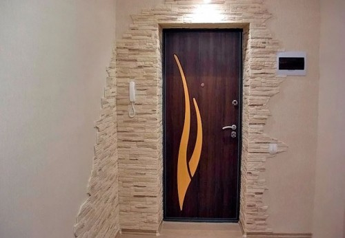 - S'il y a une porte, la décoration des pentes de la porte d'entrée avec une pierre décorative est réalisée en tenant compte de l'utilisation d'autres matériaux de finition.