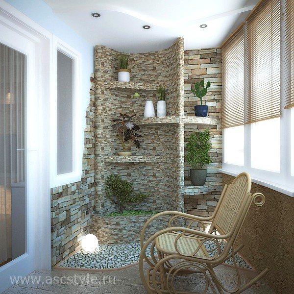 Για εσωτερική διακόσμηση του μπαλκονιού Μπορούν να χρησιμοποιηθούν πολλοί τύποι υλικών προσόψεων: κολλημένοι και κολλημένοι στο πλαίσιο. Η πιο κατάλληλη επιλογή για το μπαλκόνι είναι θερμικά πάνελ, αποτελούμενα από άκαμπτη βάση, μόνωση και διακοσμητικό στρώμα από φυσική πέτρα ή πλακάκια κλίνκερ. Μπορείτε να τα δείτε στη διακόσμηση του χαγιάτι στην παρακάτω φωτογραφία.