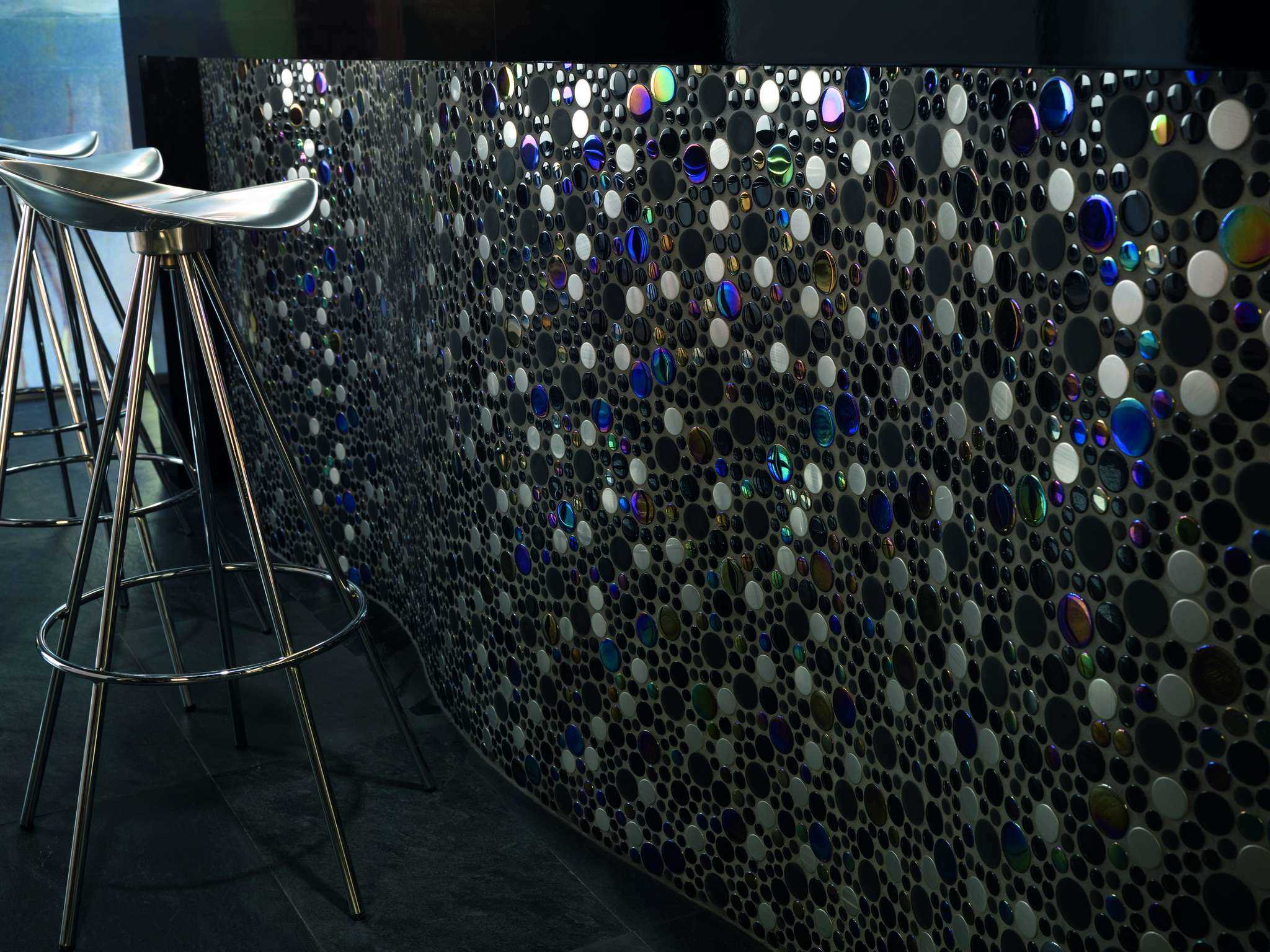 Μια τέτοια επίστρωση φαίνεται υπέροχη, αλλά κακή αν είναι ολισθηρή. Επομένως, τα γυαλισμένα πλακάκια για το μπαλκόνι δεν είναι κατάλληλα. Μια καλή επιλογή για το πάτωμα, από όλες τις απόψεις, είναι ένα κεραμικό μωσαϊκό.