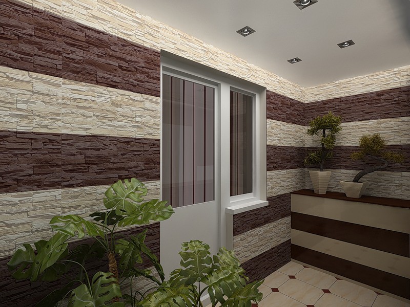 Το κύριο πράγμα που πρέπει να θυμάστε είναι ότι για ένα τόσο μικρό δωμάτιο ως μέση χαγιάτι, και ακόμη περισσότερο, ένα μπαλκόνι, πλακίδια μεγάλου σχήματος - η πιο ακατάλληλη επιλογή. Εκτός αν χρησιμοποιείτε ένα τέτοιο πλακίδιο μόνο για να δημιουργήσετε ένα πλαίσιο που έρχεται σε αντίθεση με το χρώμα και το σχήμα, επισημαίνοντας το κάτω μέρος του τοίχου.