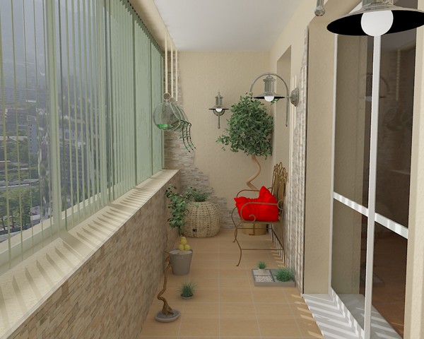 Το μπαλκόνι είναι διαρθρωτικά διαφορετικό από το χαγιάτι. Η διακόσμηση του ξεκινά με το γεγονός ότι ένας μεταλλικός φράκτης με κιγκλίδωμα αντικαθίσταται με ένα στηθαίο από τούβλα ή μπλοκ και εγκαθίστανται παράθυρα.