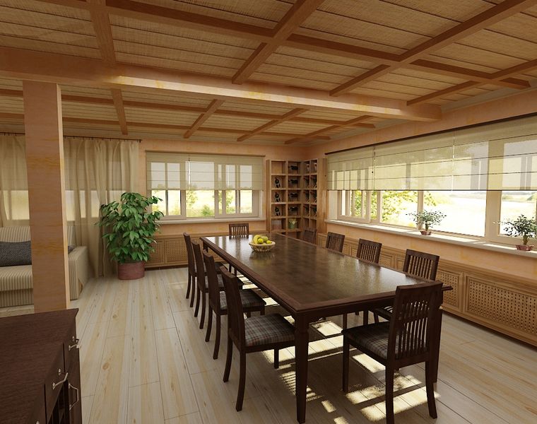 - Εκτός από τις οροφές και τα διακοσμητικά υλικά τοίχου από ξύλο, το δάπεδο, φυσικά, συμμετέχει επίσης στο σχεδιασμό των δωματίων. Επιπλέον, μπορεί να είναι η κύρια διακόσμηση του εσωτερικού.