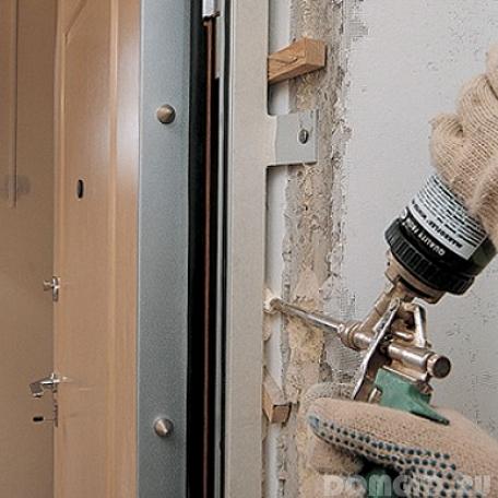 Οι εξωτερικές γωνίες των πλαγιών της πόρτας είναι κολλημένες με μια ειδική πλάκα, η οποία τους εμποδίζει να σπάσουν. Στη συνέχεια, τους ενέμετε.