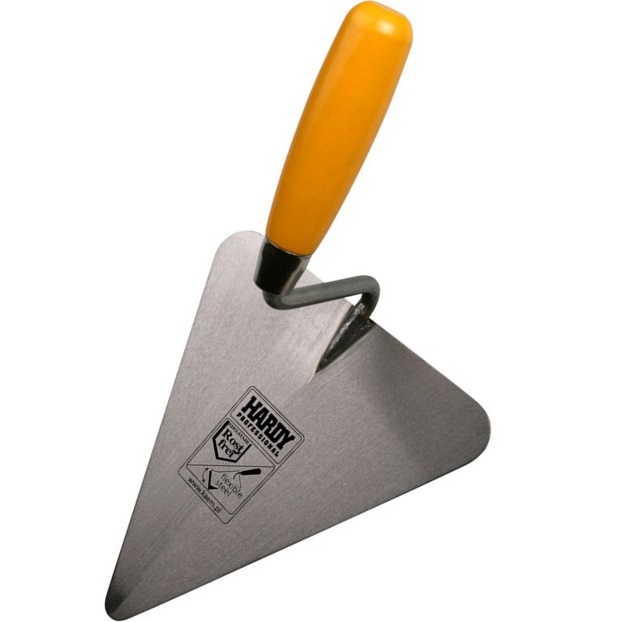 | Υπάρχουν πολλοί τύποι μυστρί, αλλά μια τέτοια τριγωνική έκδοση είναι ιδανική για το έργο ενός κτίστη. Αυτή η φόρμα σας επιτρέπει να επιλέξετε μια λύση στις γωνίες, για την οποία η μύτη του εργαλείου είναι ομαλά στρογγυλεμένη. Η λαβή του έχει επίπεδη, μερικές φορές ακόμη και μεταλλική φτέρνα, έτσι ώστε να είναι βολικό να χτυπάτε ένα τούβλο. Το ύφασμα της σπάτουλας πρέπει να είναι κατασκευασμένο από ανοξείδωτο ατσάλι και οι άκρες του είναι αιχμηρές, γεγονός που επιτρέπει την ανάρτηση του τούβλου. Κατά μέσο όρο, το μήκος της ωμοπλάτης είναι 16 cm και το πλάτος είναι 11 cm. | |