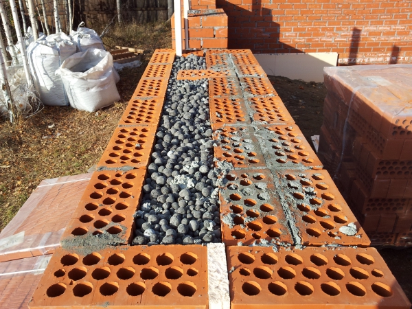 - Αυτή είναι η χρήση κοίλων (σχισμένων) τούβλων και η συσκευή στους τοίχους των φρεατίων γεμάτη με επένδυση από ελαφρύ σκυρόδεμα, υγρό κυψελοειδές σκυρόδεμα, αφρό ή μάζα μάζας.