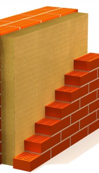 - Τοίχος σε ένα τούβλο με επένδυση και μόνωση ορυκτού μαλλιού