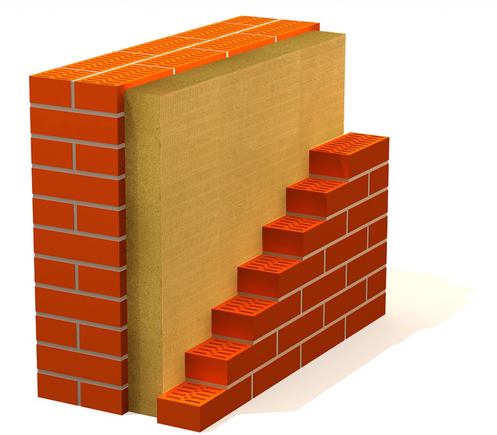 - Η τοιχοποιία με στρώματα θερμομονωτικών υλικών πραγματοποιείται πάντα με κενό που αντιστοιχεί στο πάχος της επένδυσης. Η θέση του βρίσκεται μεταξύ της μπροστινής verst και της επόμενης σειράς.