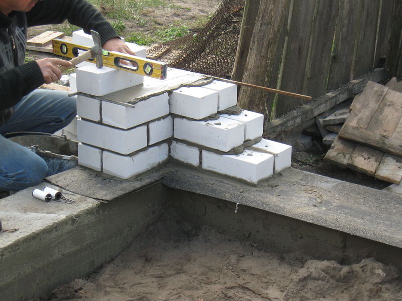 Η τοποθέτηση πραγματοποιείται σε μια καλά ευθυγραμμισμένη επιφάνεια του θεμελίου και ξεκινά από τις γωνίες. Σε αυτά, καθώς και στις περιοχές όπου βρίσκονται τα ανοίγματα, εκτελούνται προκαταρκτικά οι φέροντες με κλίση προς τα πάνω (διαφυγής) έως 6 ή 8 σειρές.