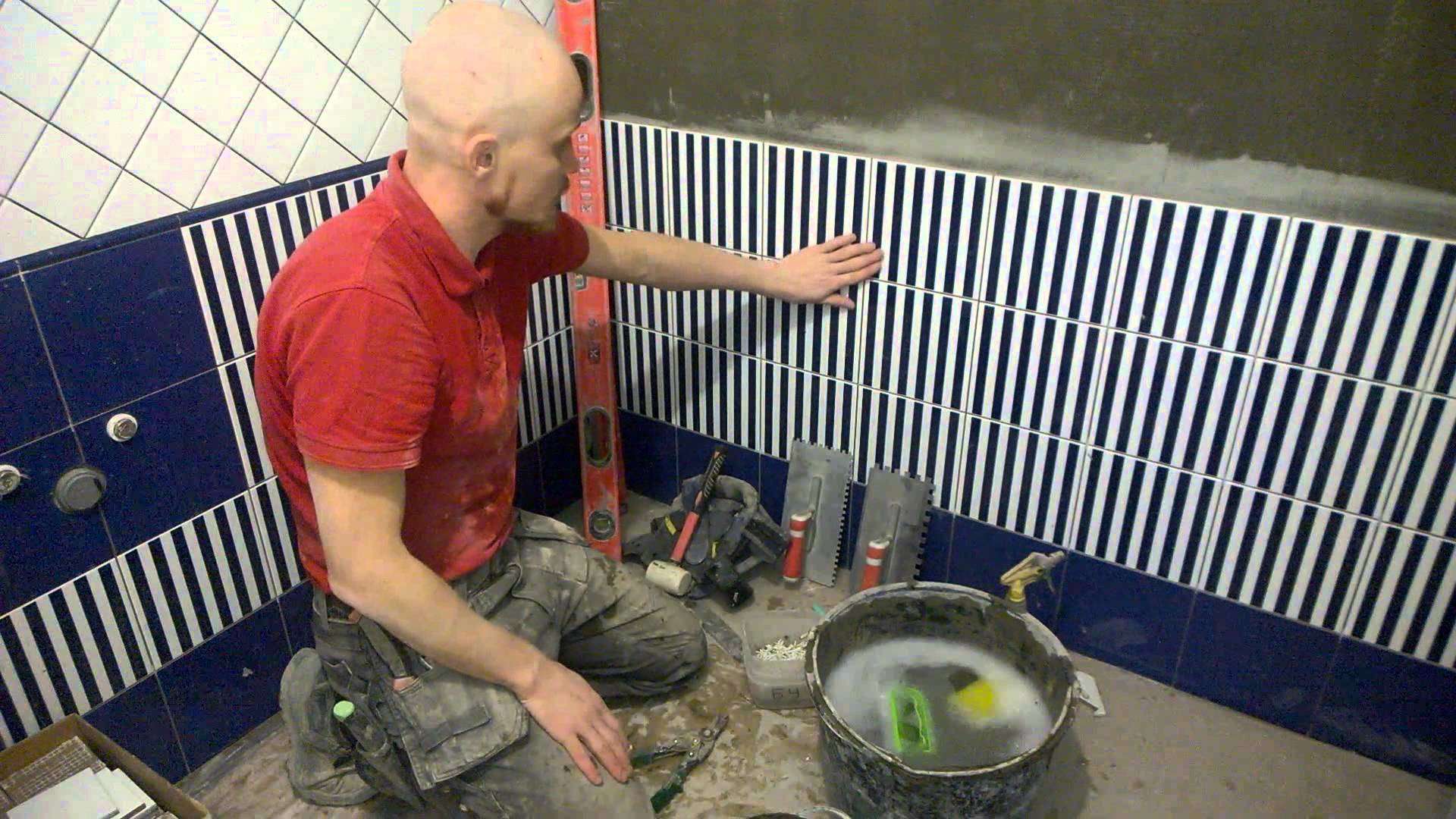 | Μια λαστιχένια σφύρα χρησιμοποιείται για την αναστάτωση των πλακιδίων. Αυτό ισχύει ιδιαίτερα όταν εγκαθίσταται σε τσιμεντοκονία. | |