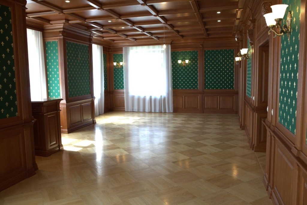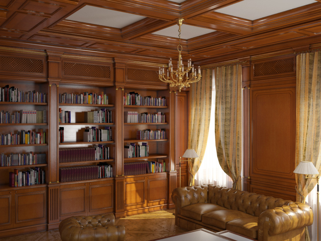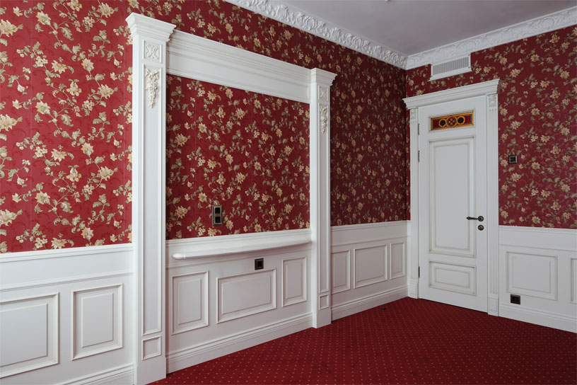 Συχνά, προβλέπει επένδυση τοίχου σε όλο το ύψος. Η οροφή είναι διακοσμημένη με δωμάτια σε στιλ αρ νουβό ή σε στιλ αυτοκρατορίας, αλλά σε αυτήν την περίπτωση, το πάνω μέρος των πάνελ είναι από κόντρα πλακέ, καλυμμένο με ύφασμα ή δέρμα.