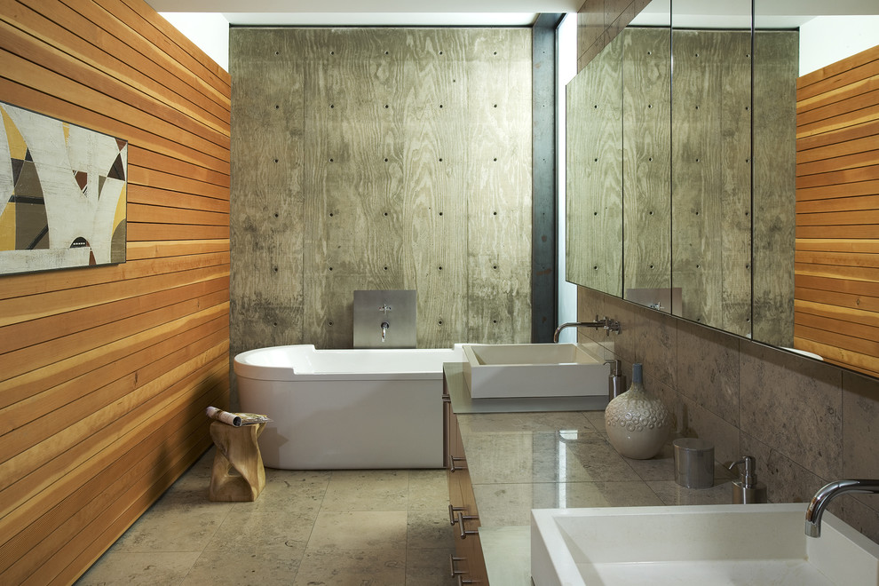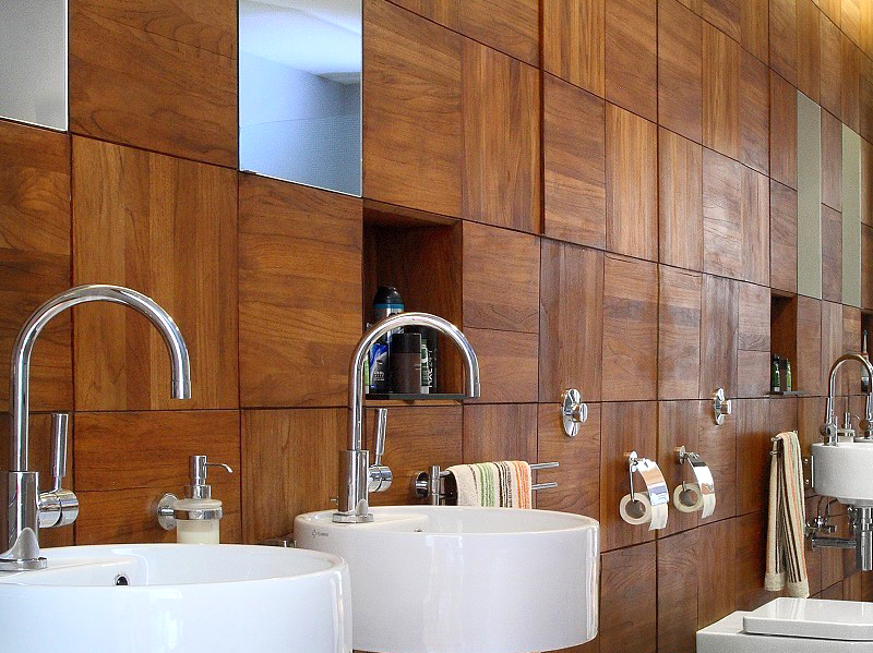 - Ξύλινο πάνελ - στον τοίχο του μπάνιου